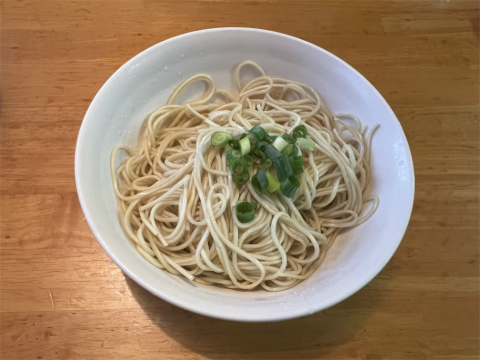 を注文しました。焼ギョーザと揚げギョーザはアシスタントとシェアすることに。麺の硬さはアシスタントの方の薦めもありバリカタにしました。