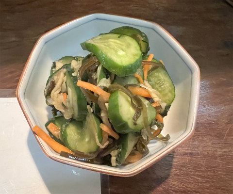 鍼灸治療を終えて今日はさて何を食べようかと考えて歩いていると「めし屋 菜の花」の看板が見つかりました。こんなところにお店あったっけ?と思いながら今日の夕食はここでいただくことに決めました。入口の扉を開けて店内へ入ると先客は1組2名でした。1人で来たことをお店の方に告げるとカウンター席を薦められました。ちょうど端の席が空いておりましたので座り、まずはウーロン茶を注文。お店の方にお薦めを聞くと、メインに後はもう少し食べることが出来そうなら牛肉とゴボウのしぐれ煮と揚げ浸しが超お薦めということでしたのでそれを参考に