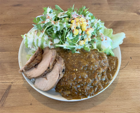 ごはんが炊けるまで少し時間がかかるということで、先にカフェオレ(ICE)が出てきました。少し飲んでみましたがミルクもコーヒーの味はっきりとしておりなかなか美味しいカフェオレです。10分ほど待つとキーマカレーと焼豚のハーフ&ハーフが出てきました。お店の方はカレーはあまり辛くないと言っていたので注文したのですが、私には少々辛いキーマカレーでした。でも激辛というほどのものではなく、食べることは出来ました。味は悪くはなかったですよ、私は個人的にキーマカレーというのは積極的には食べないのであまり好きではないのでしょう。そんな私の意見ですので参考にならないかも。焼豚は自家製だと思うのですが、味は可もなく不可もなくと特色がない味です。一軒家カフェで雰囲気のいいお店がこのような場所で発見できたのは嬉しいことです。デザートもありましたので機会があれば次回はデザートなど食べに行きたいですね。ごちそうさまでした。