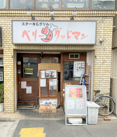 神奈川県横浜市神奈川区子安通1丁目にあるステーキ、ハンバーグのお店「ステーキ&グリル ベリーグッドマン 子安店」です。最寄駅は京急本線の子安駅になります。