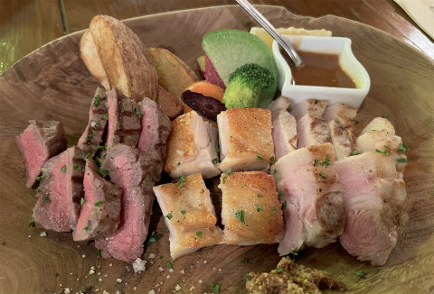 オードブル盛合せ10種(1人前)は色々なオードブルが少しずつ味わえてよかったですね。オードブルの中ではトウモロコシのスープが濃厚で美味しかったのを記憶しております。肉盛りは牛肉はUSサーロイン、豚肉ははまぽーくロース、鶏肉は信玄どりももコンフィでしたが食べた中では信玄どりももコンフィが一番ましでした。オードブルがよかっただけに肉盛りは正直期待したほどではありませんでした。今回1人で行ったのでこれだけしか注文出来ませんでしたが、次回行く際は知人とでも行って色々と注文するのがよいのかなと。お店自体は雰囲気も良く、1人で行ってもテーブル席で快適に食事が出来たのは好感が持てます。ごちそうさまでした。
