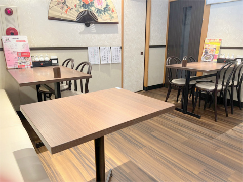 「中国料理 龍桂林 新松戸店」には駐車場が用意されております。駐車場に車を停めて店内へ。先客は2組おりました。4人掛けのテーブル席に案内されて座り、メニューの中から
