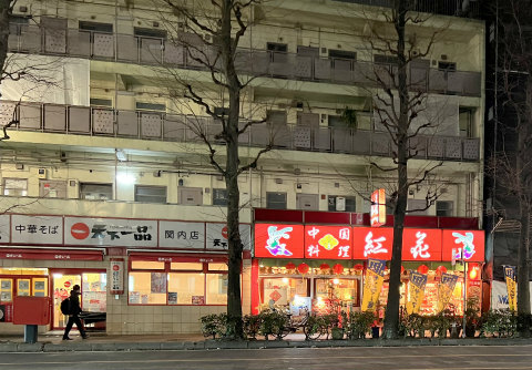 神奈川県横浜市中区尾上町3丁目にある「中華料理 紅花」です。最寄駅はJR根岸線、横浜市営地下鉄ブルーラインの関内駅になります。