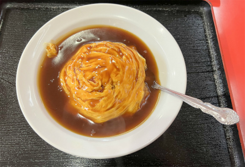 を注文しました。店員の方に聞くと天津飯の餡は甘酢餡とのことでしたが、醤油でも可能とのことで醤油餡にしてもらいました。