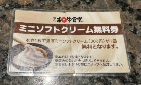 和牛食堂 見和店 ミニソフトクリーム無料券
