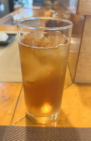 「居酒屋 集。(つどい)」の入口の扉を開けて店内へ。お店はほぼ満席でした。お店の方に1人で来たことを告げるとカウンターの席に案内されました。まずはウーロン茶を注文。メニューの中から牛筋煮込み、とり天おろしポン酢、だし巻きたまごを注文しました。