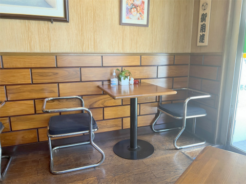 「珈琲ラウンジ あひる」の入口の扉を開けて店内へ。2人掛けの席が空いているので座りました。本日の日替わりランチは中華丼のみでドリンクが付くとのことで、本日のランチを注文しました。