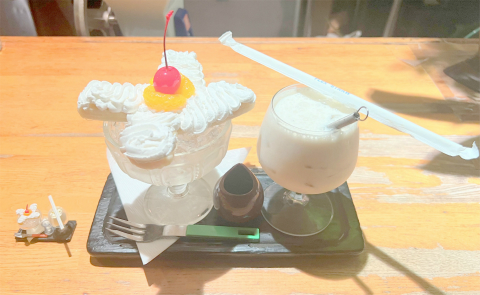 珈琲道場 侍 バナンジュースのミニチュア(左)と実物(右)