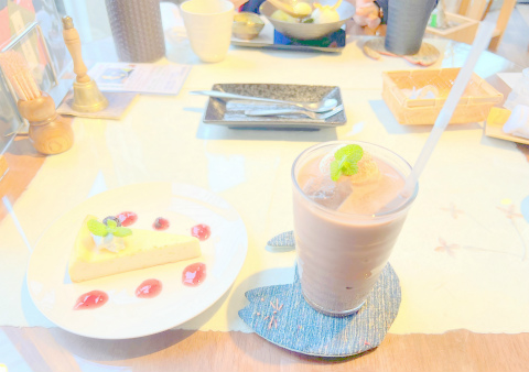 つめたいココア、アイスのせはココアの味が濃厚でアイスが程良くココアに合っておりました。チーズケーキは見映えも良く、味は甘すぎず美味しかったです。店内も落ち着いておりいい気分転換が出来ました。「甘味café 空~くう~」、機会があればまた食べに行きたいですね。ごちそうさまでした。