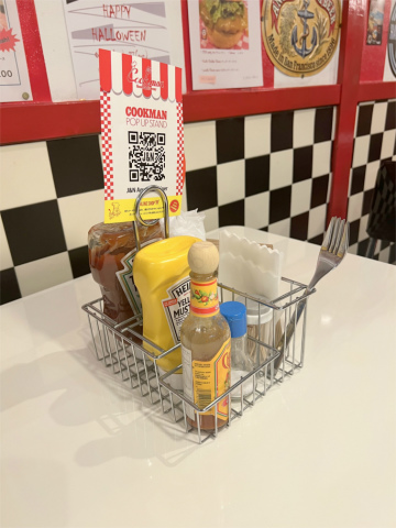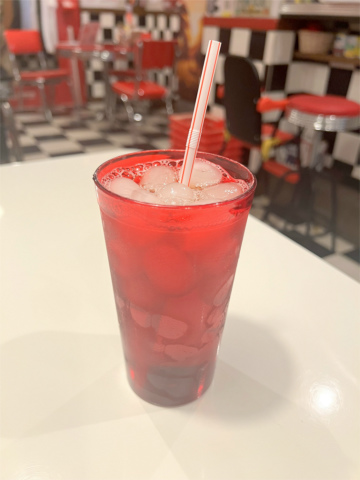 「J&N AMERICAN DINER」の入口の扉を開けて店内へ。私が行った時はお店は男性と女性の2人で切り盛りされておりました。店員さんにお好きな席にどうぞと言われて4人掛けのテーブル席に座りました。メニューの中から
