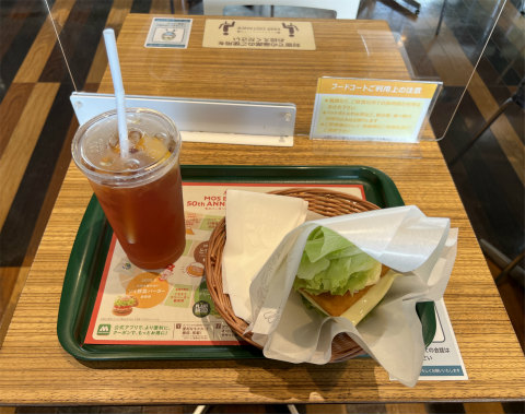 MOS BURGER モスバーガー TXグランドアベ ニューおおたかの森 アイスレモンティーLとモスの菜摘フィッシュ