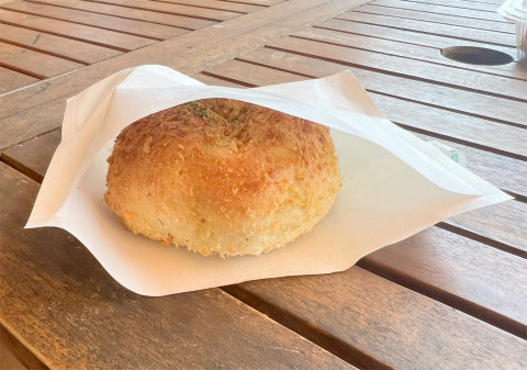 テラス席で私は焼きステーキカレーパンとクランベリークリームチーズを、アシスタント焼きステーキカレーパンとキッシュロレーヌをいただくことに。焼きステーキカレーパンは作り立てで温かく、できたてのカレーパンはなかなか美味しかったです。クランベリークリームチーズはカレーパンが美味しかったのに比べて味は普通でした。あまりゆっくりする時間はなかったですがいい気分転換になりました。全体的にパンが高い印象を受けましたが物価高の世の中ですから、こんなこのですかね。ごちそうさまでした。