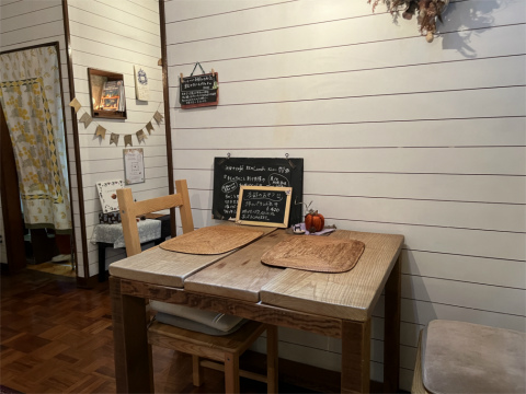 「irie + garden & cafe」の店内へ入ると、先客は不在でした。お店は一軒家をカフェに改造した建物のようです。2人掛けのテーブル席に座り、メニューの中から